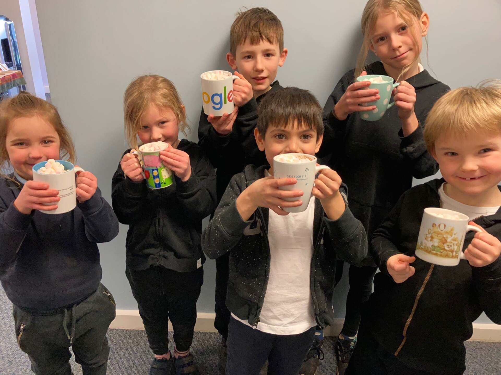 Our latest group of fantastic role models, with their hot chocolate treats.