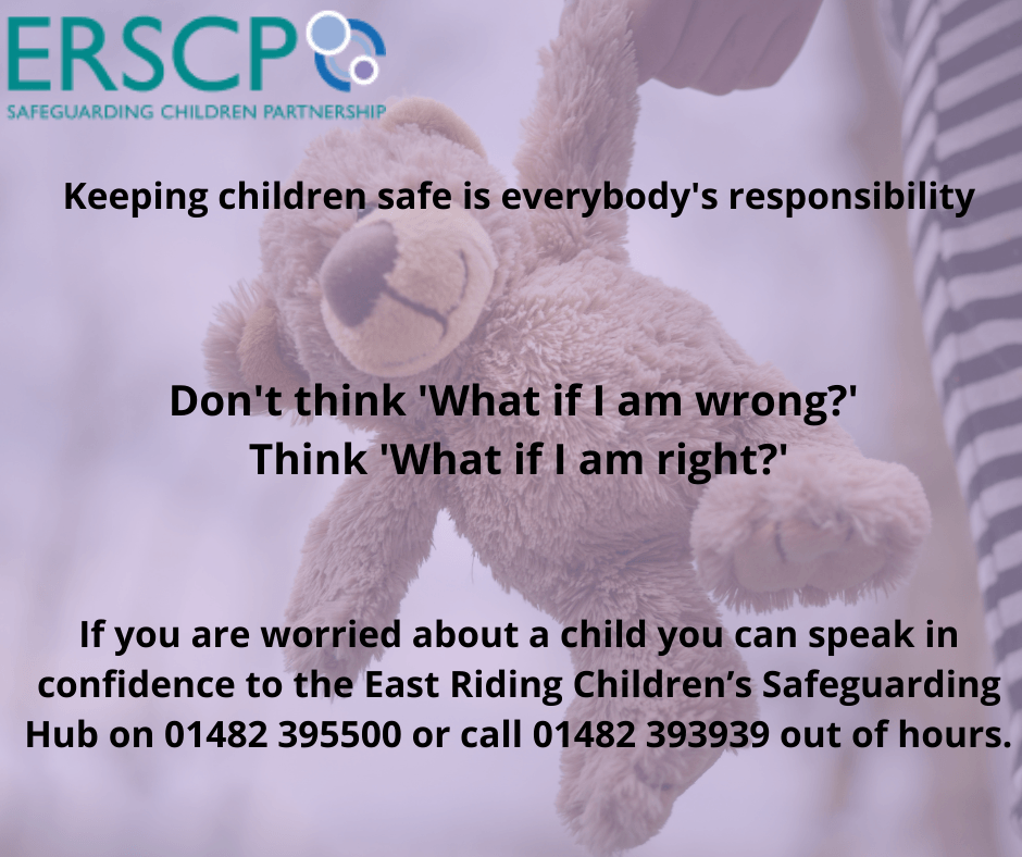 The East Riding Safeguarding Children Board has laid down the procedures that we follow, and the school has adopted a Child Protection Policy in line with this. If you would like to know more about our procedures or policies, please speak to any of the Safeguarding Team.