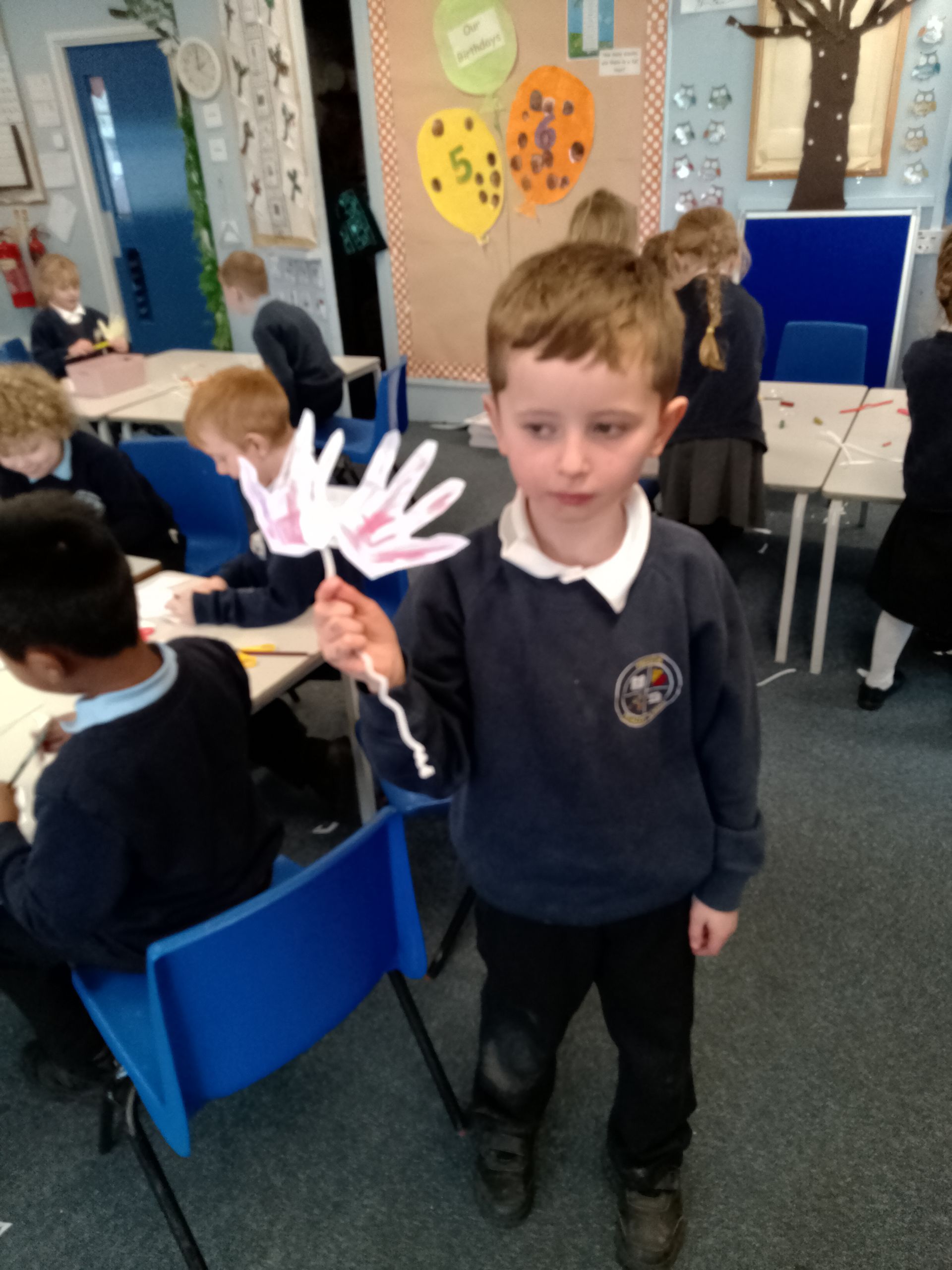 In Jigsaw this week we have been talking about how we can stretch ourselves to complete goals which aren't easy to complete rather than giving up too quickly. To remind us to do this we made some stretchy flowers using handprints as flowers and pipe cleaners as stretchy stalks.