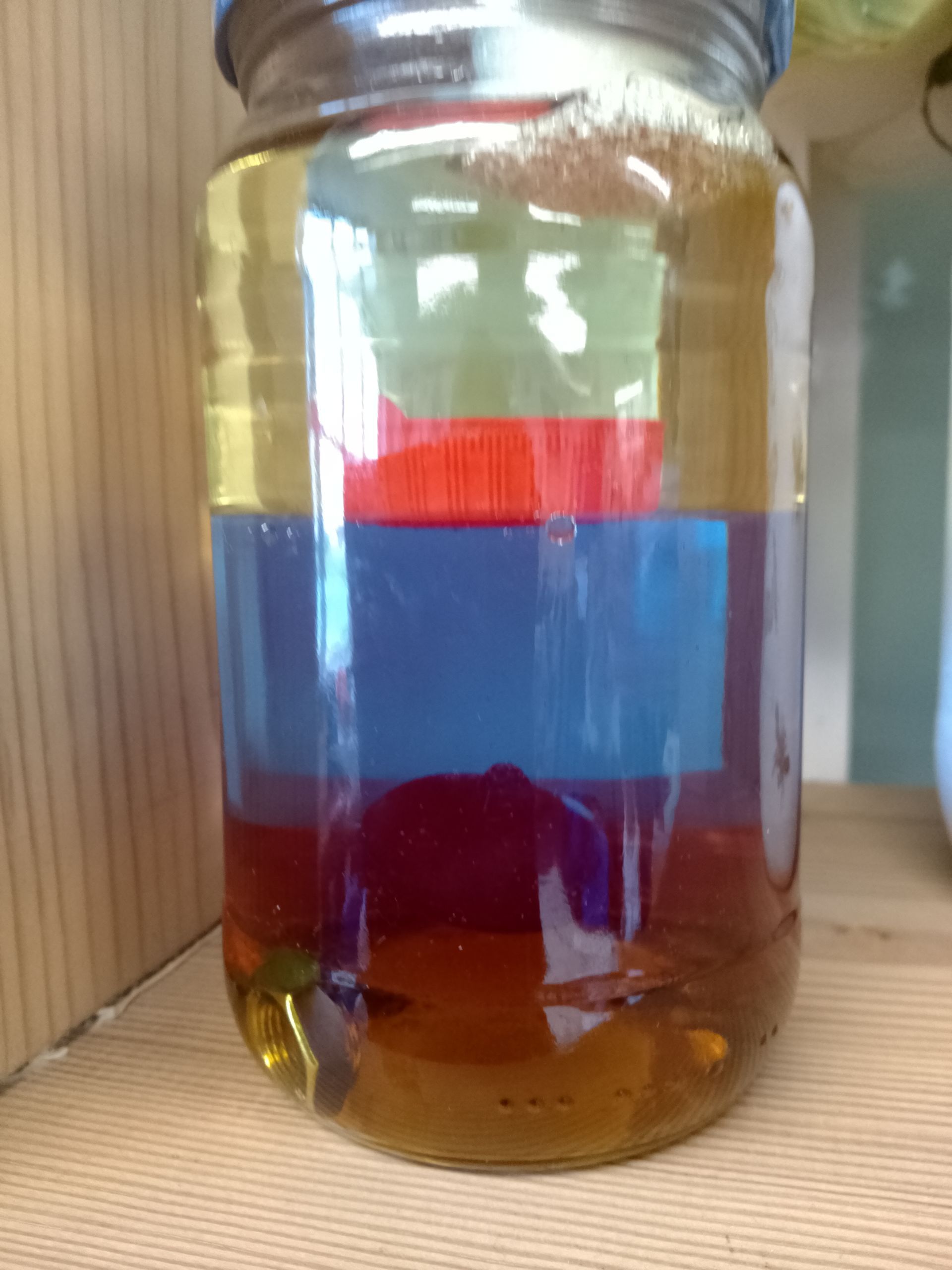 We also wondered what would happen if we put Gummy Bears in different solutions. We put them in a salt water solution, a sugar/water solution, in white vinegar and water and watched the changes each day.