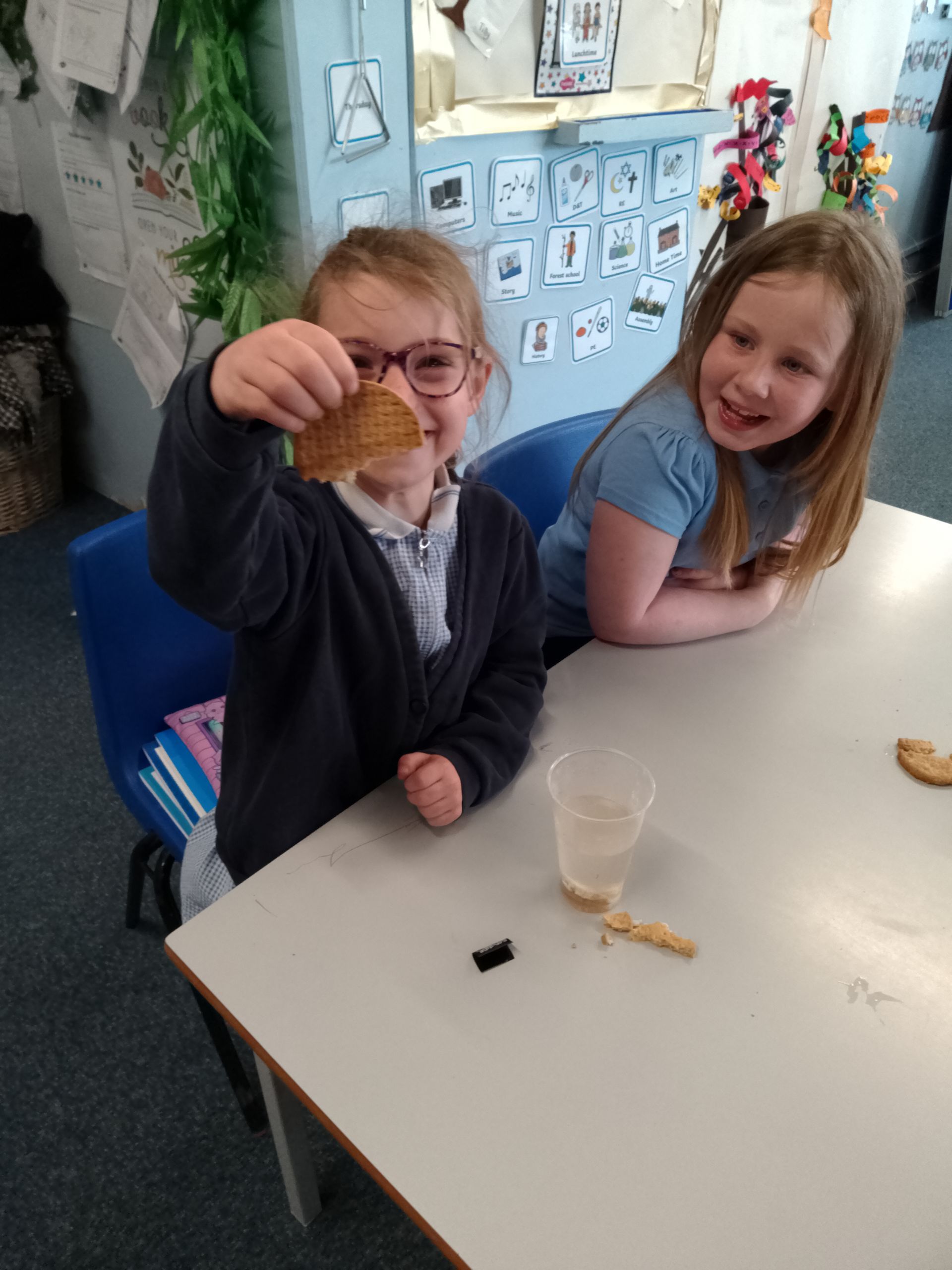 We finished off our science week by taking part in a whole school science investigation. We listened to the story of the Gingerbread Man and tested biscuits to see which biscuit would have made the best Gingerbread Man by dunking biscuits in warm water.