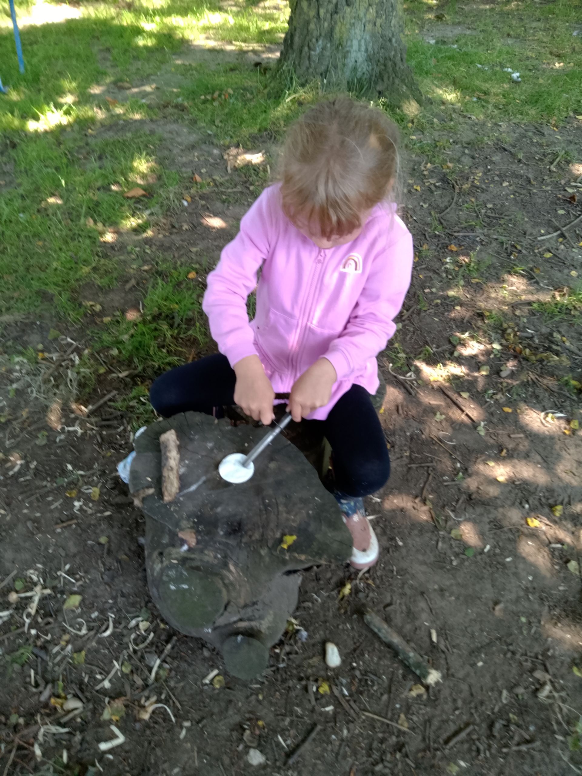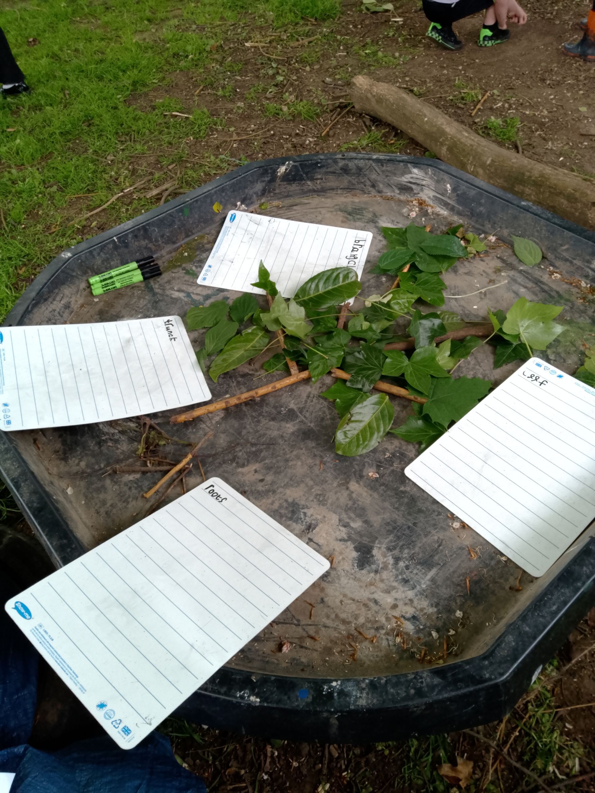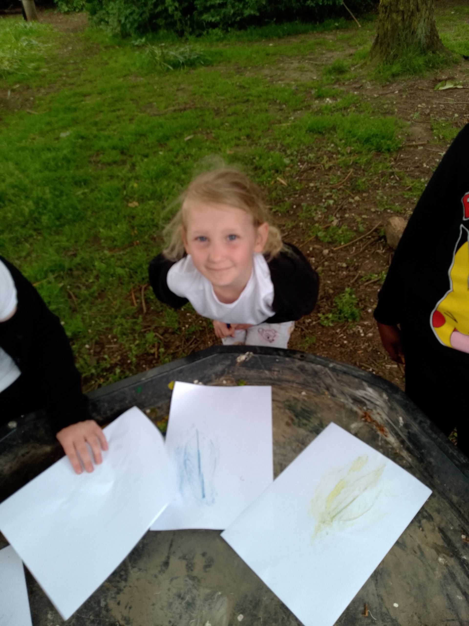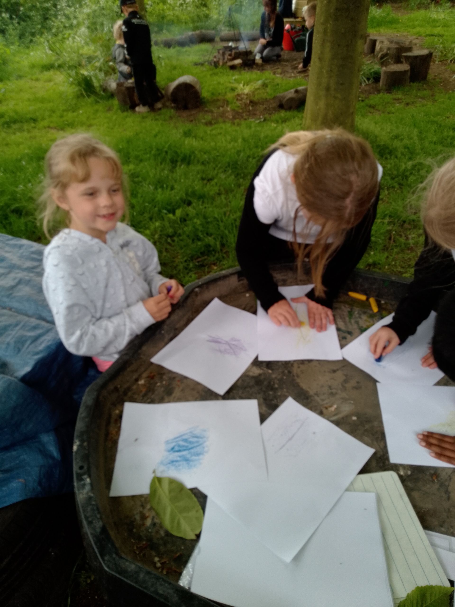 During our outdoor learning session this week we had a go at making some leaf rubbings, we created images of trees using twigs and leaves then added labels to them to show we understood the different parts of a tree. Mrs Thompson made sweetcorn fritters for us on the campfire which we really enjoyed.
