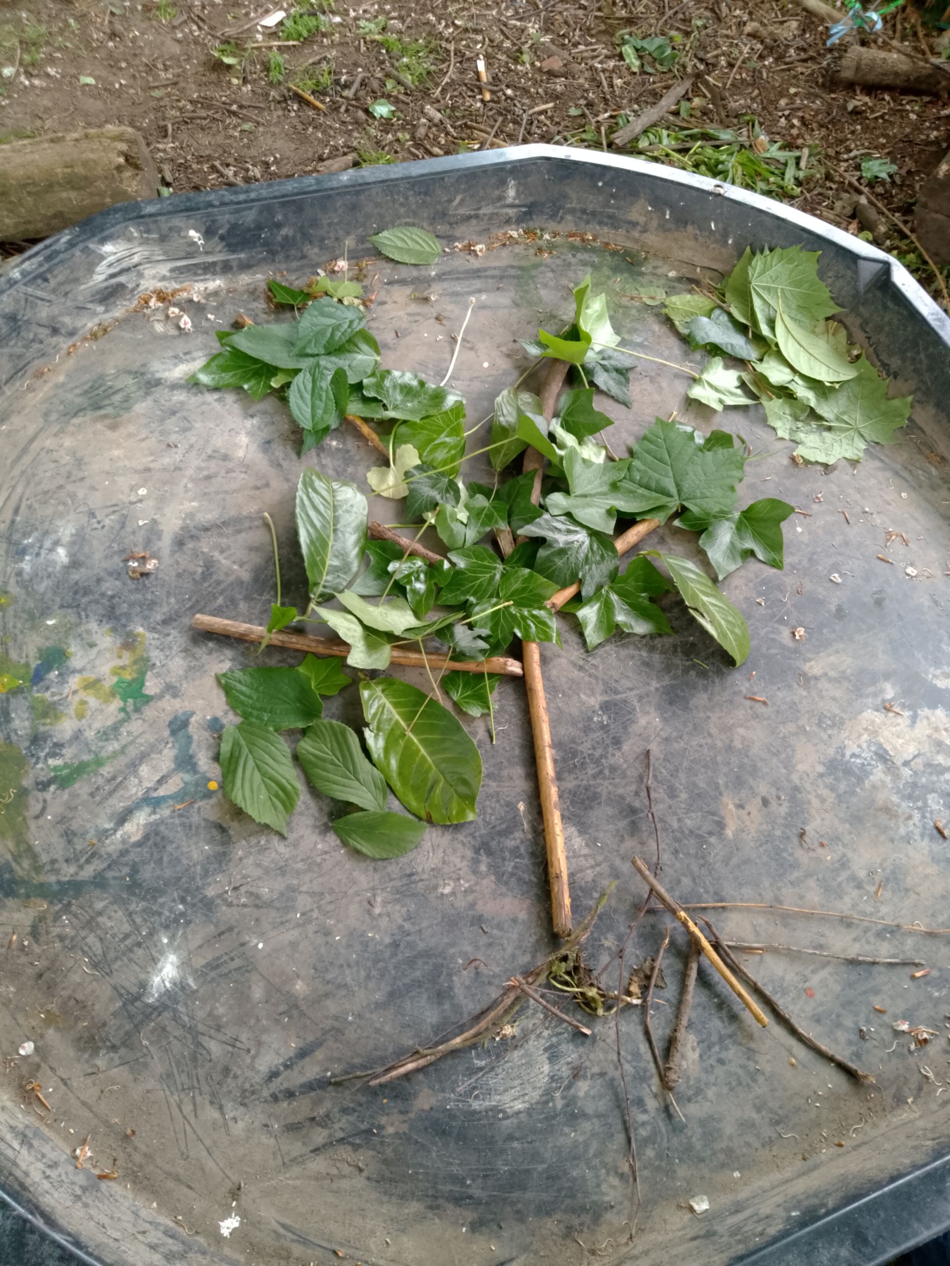 We then enjoyed our outdoor learning session on Tuesday afternoon where we ate a lovely pasta dish cooked over the fire by Mrs Thompson. We made land art pictures using all sorts of natural things we could find around the outdoor learning area.