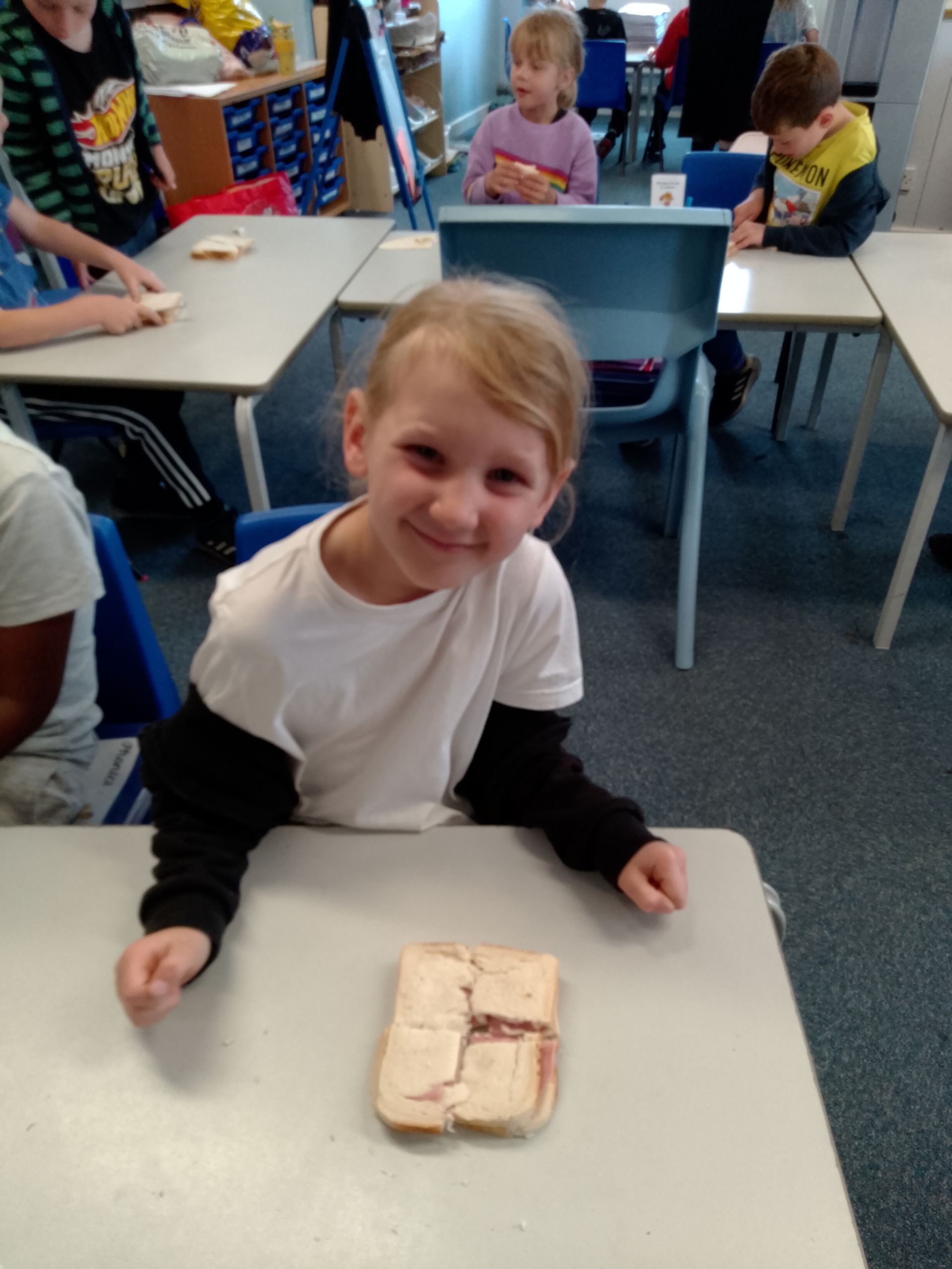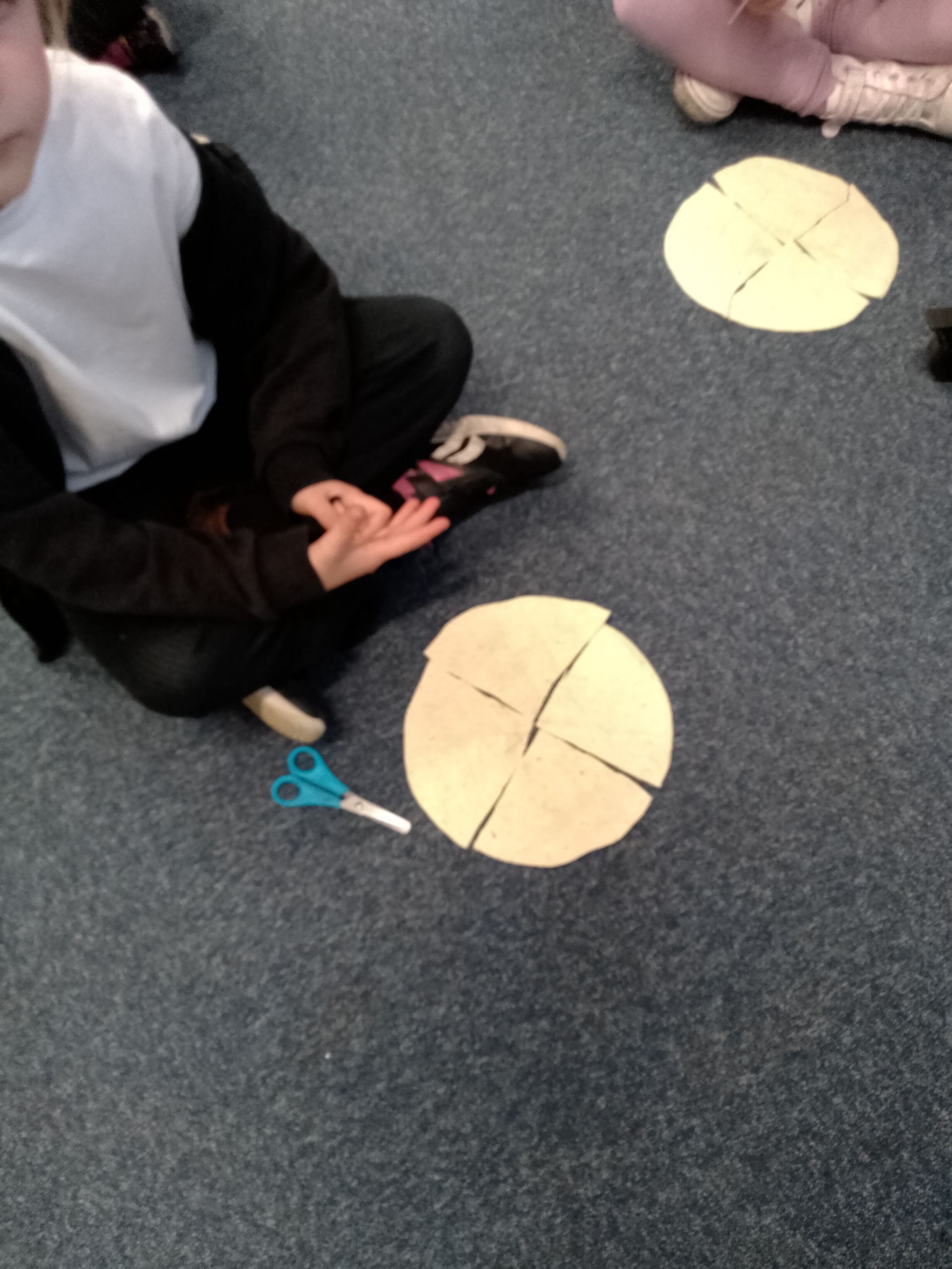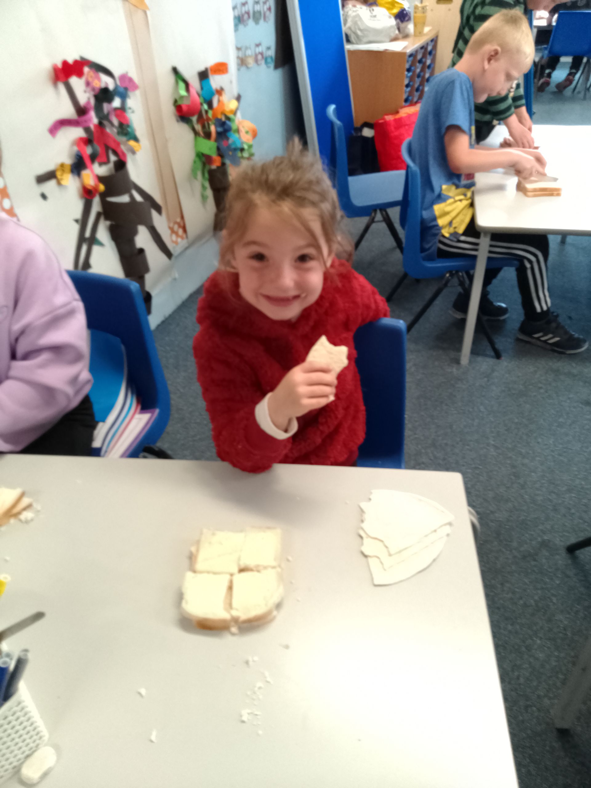Our maths sessions this week were all about fractions. We have been finding out about halves and quarters. We loved finding quarters of wraps and making sandwiches and cutting them into quarters, it meant we could eat our maths too!