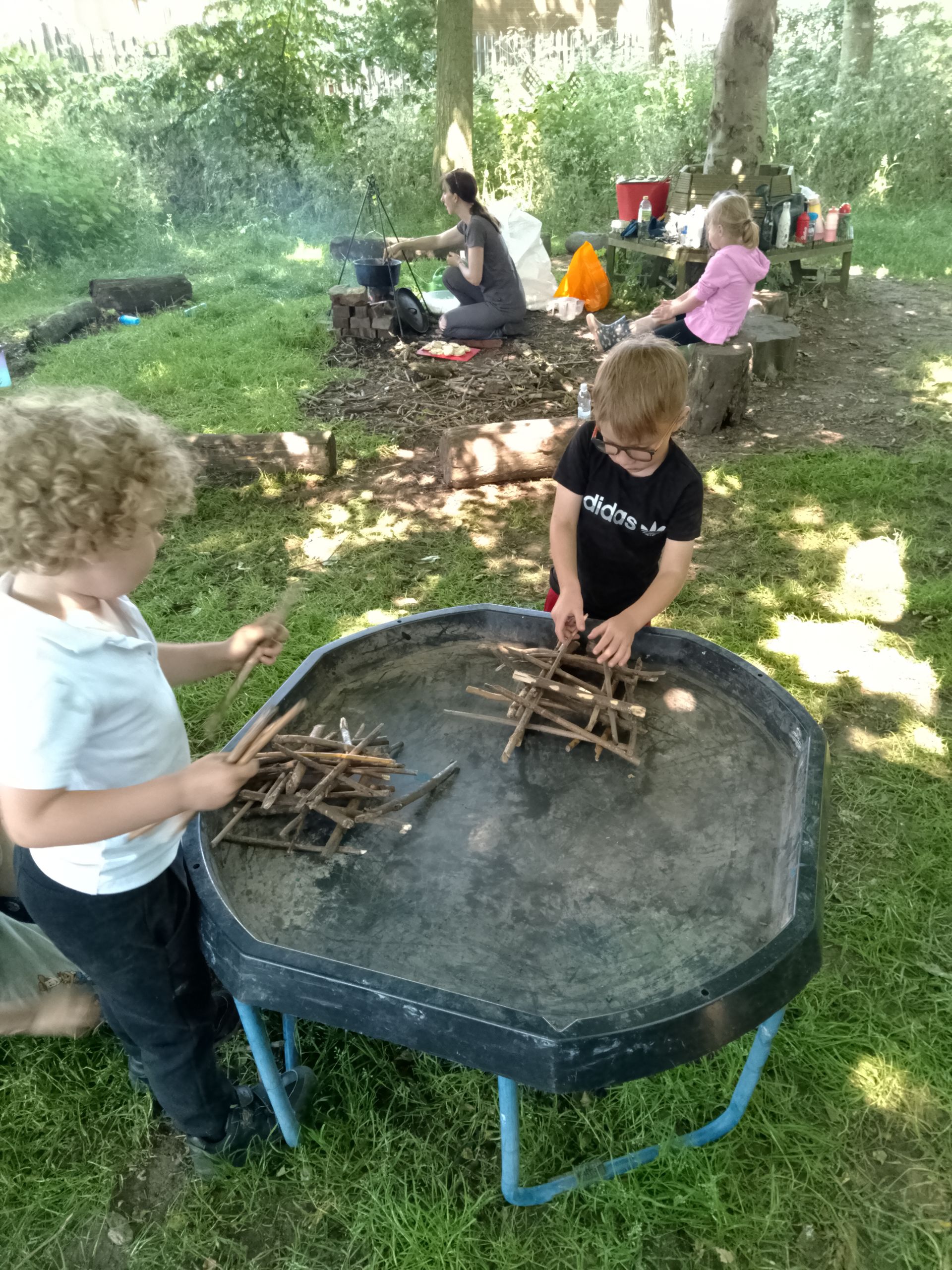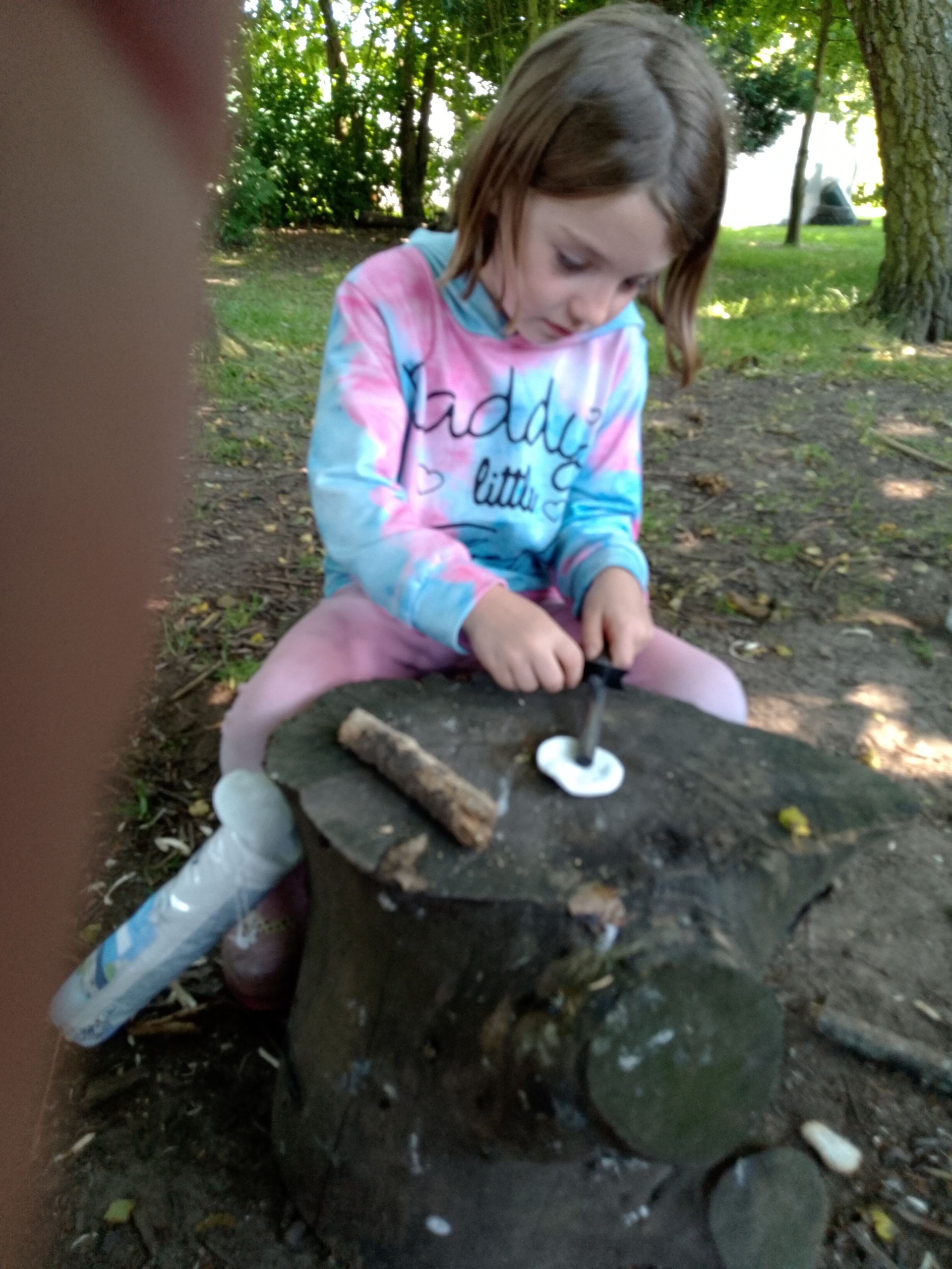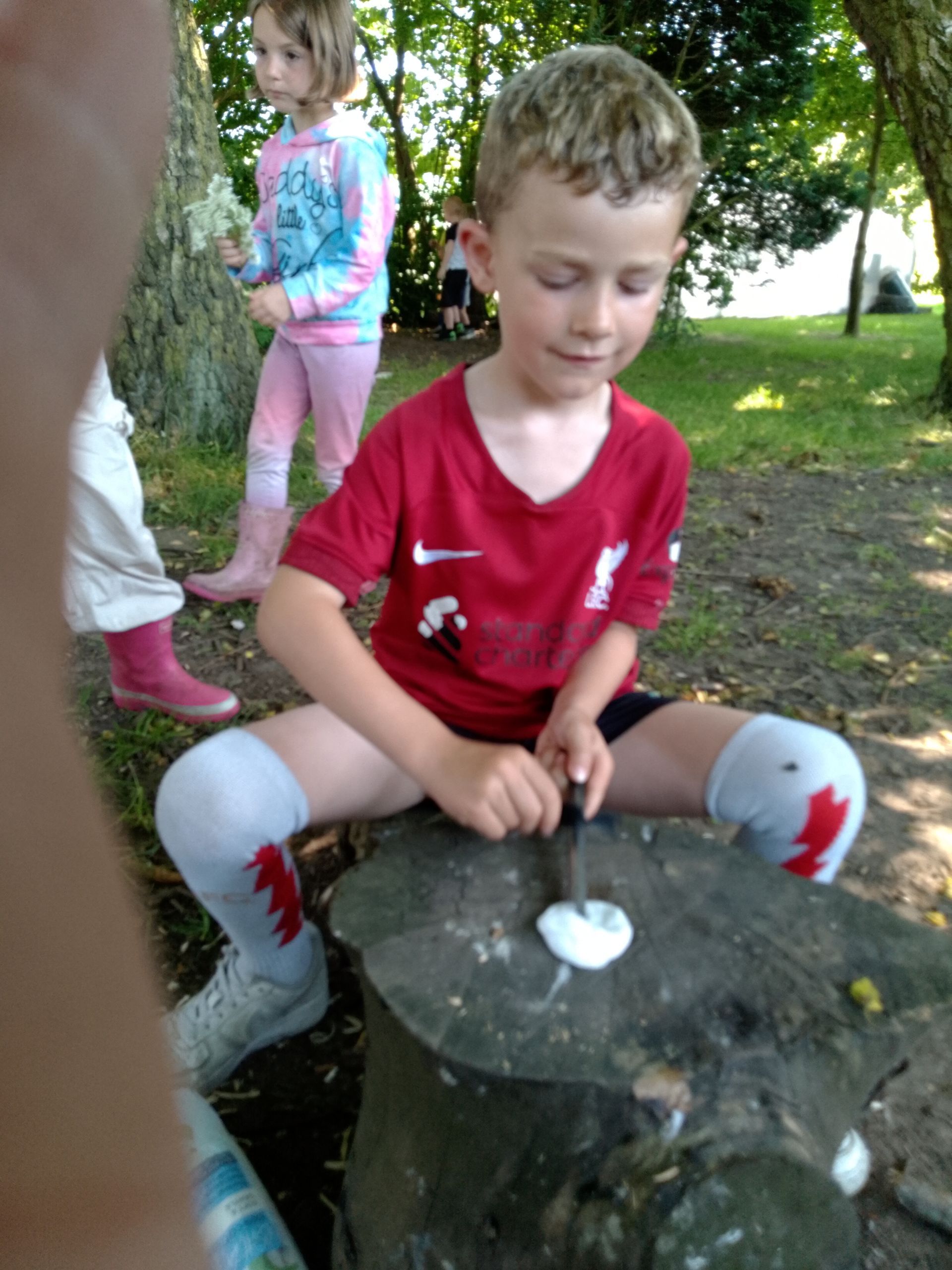 On Monday afternoon, we had a great outdoor learning session - the children had a wonderful time exploring the wildlife area. There were dens being built, flint and steel practice, whittling projects underway and some very relaxed moments in the hammock. We rounded it all off with a fire and some delicious marshmallows and chocolate biscuits!