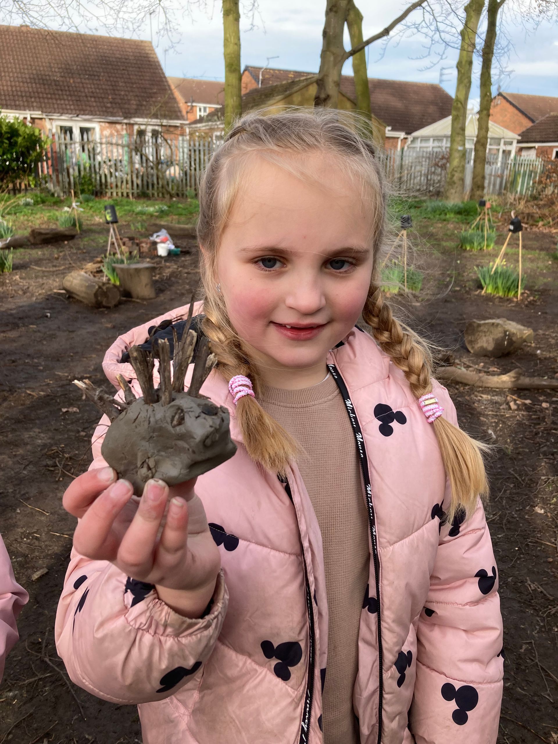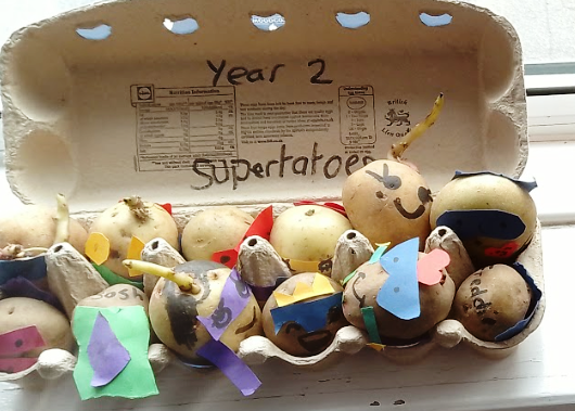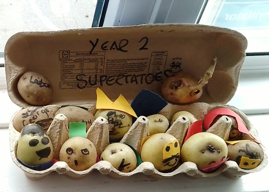 In science/outdoor learning, we have been looking at planting seeds and have designed our own gardens. This week we decorated potatoes ready for planting in a few weeks.