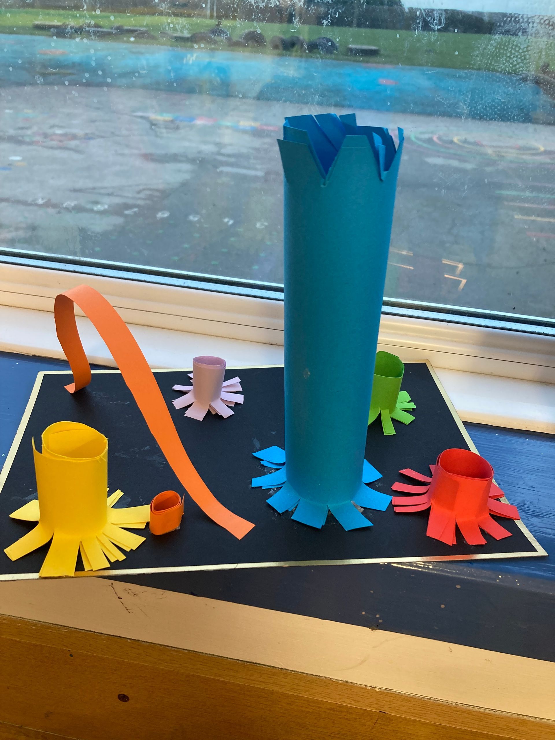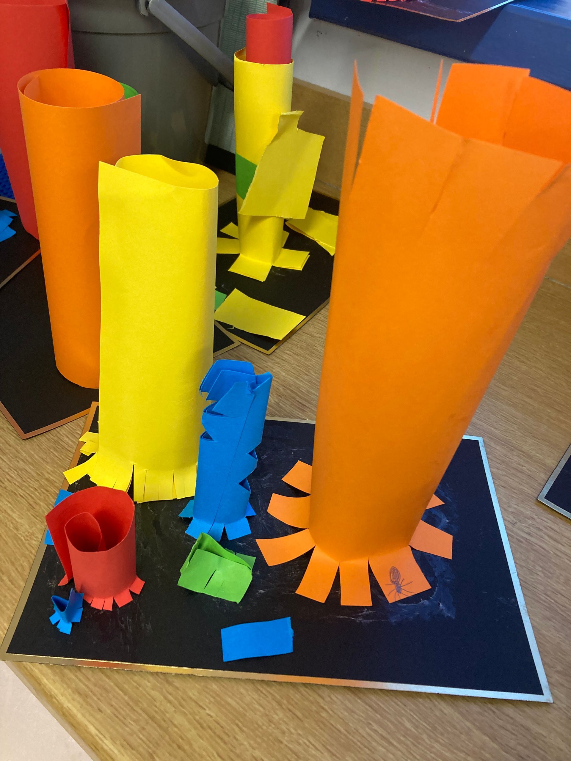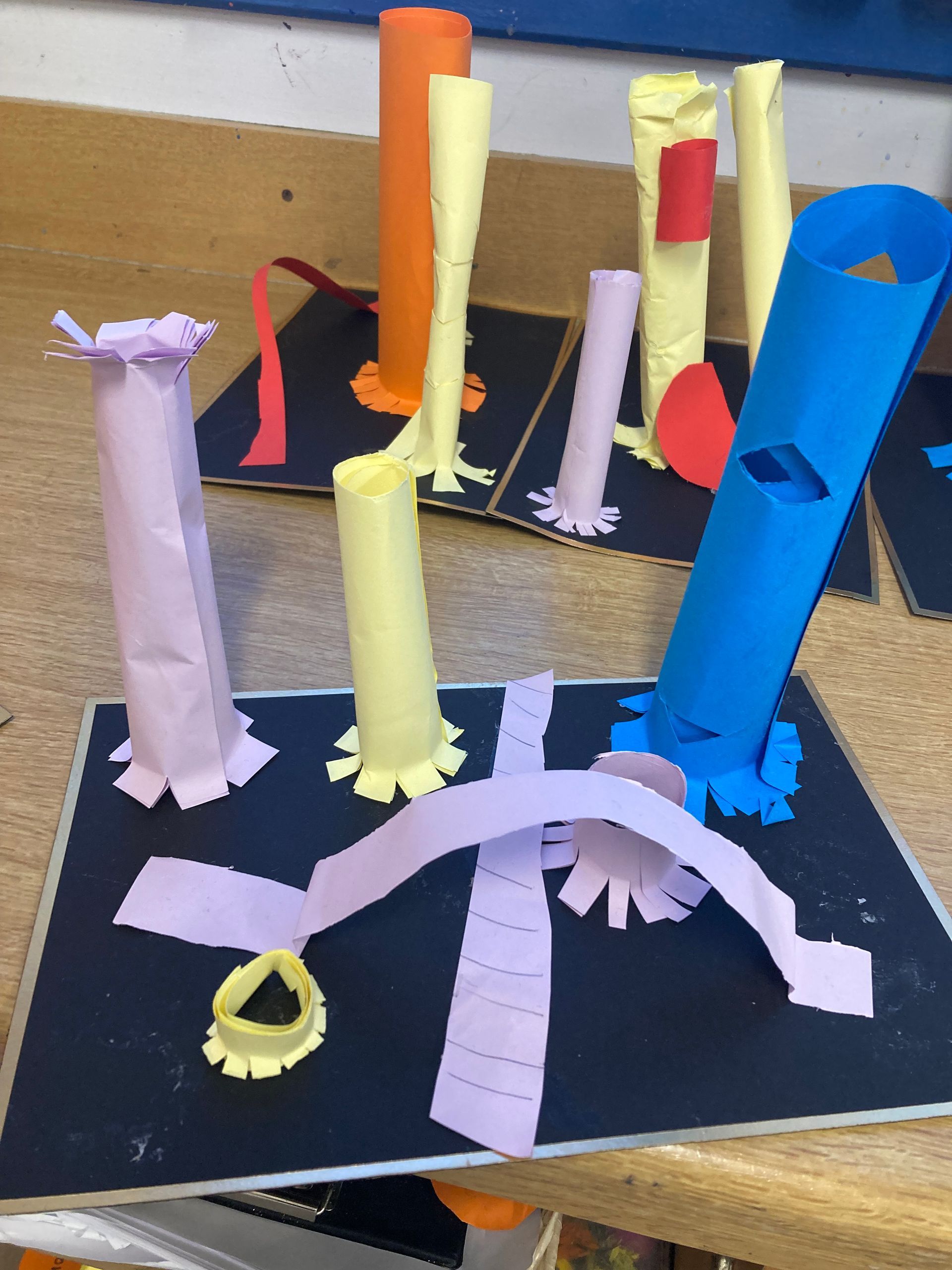 We are starting to make sculptures in our art lessons so we began by making some clay sculptures of animals in our outdoor learning session. We then made some 3D paper sculptures in art.