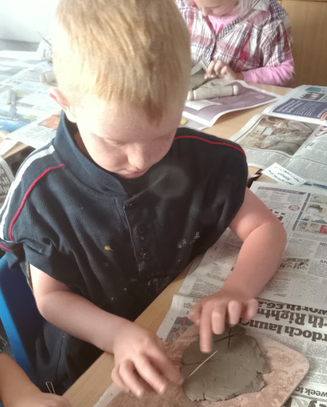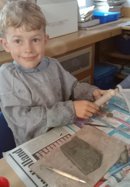 This week in art, Year 2 have been developing their clay skills. They have learned how to press shapes into clay, how to join pieces using the score and slip technique, and how to create pinch pots. They then combined all of these skills in their final project: making a clay tile.