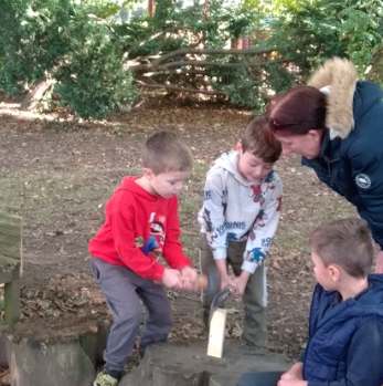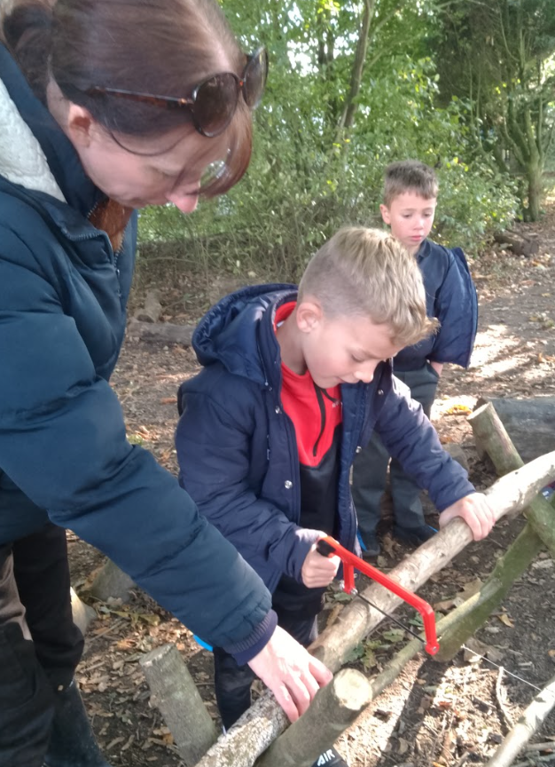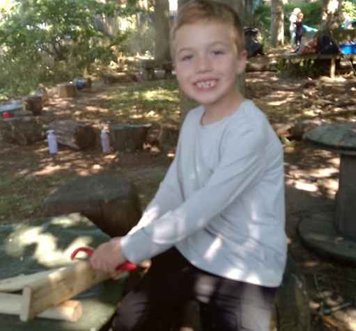 In outdoor learning, we had lots of fun learning how to use equipment safely. We used a bill-hook to chop wood and a hack saw for sawing. Outdoor learning always ends with quiet reflection against a tree. It is lovely to listen to the nature around us.