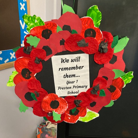 The week before we had a full week themed to commemorate Poppy Day. We learnt all about why we commemorate Poppy Day, we made our own poppies and poppy wreath. We painted poppies and decorated biscuits to look like poppies. The week was rounded off with a walk to church with the foundation children to lay our poppy wreath inside the church, alongside the memorial to those who fought in World War 1 and 2 from the village of Preston.