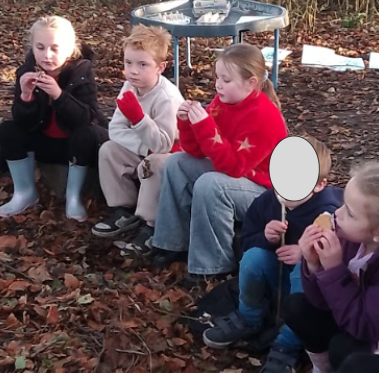 On Tuesday we all enjoyed our outdoor learning session. Fortunately we managed to stay dry this week as the rain stopped just in time. We loved trying the vegetable hot pot that Mrs Thompson prepared for us on the campfire. We also made our own Autumnal pictures using the sticks, leaves and acorns we found around the outdoor learning area.