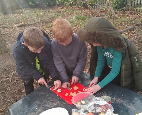 In our outdoor learning session this week, we made tomato and vegetable pasta. This wasn’t easy as it was a very windy afternoon and the fire kept going out! We got there in the end though, thanks to Mrs Pearson’s perseverance!