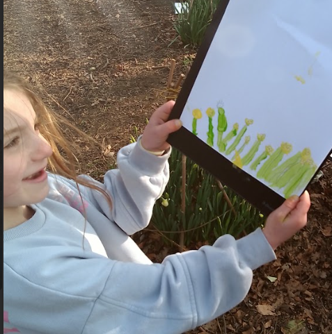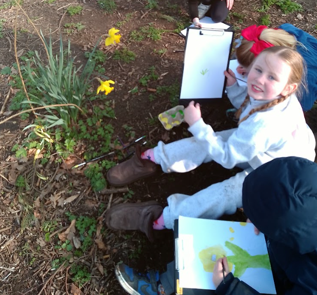 In outdoor learning, we have been observing the changes happening this season and have painted pictures of the blossoming daffodils.