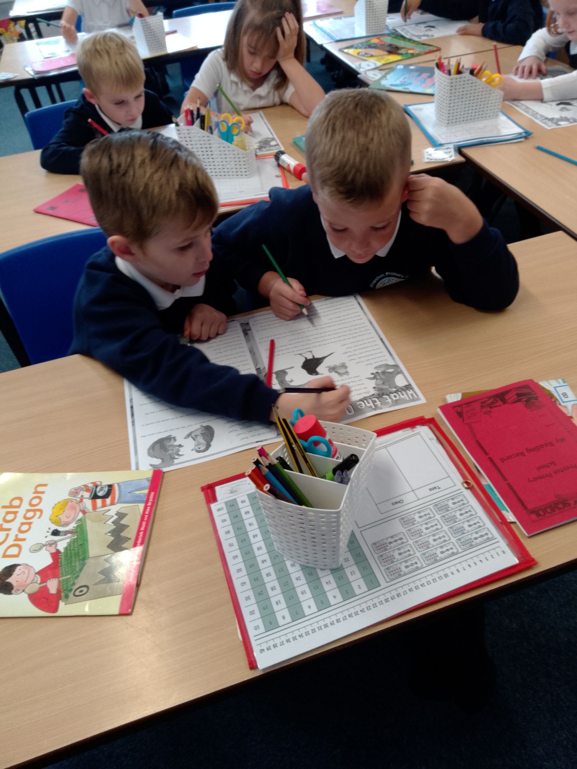 In Phonics we are now working on the Phase 3 sounds. This starts with j, v, w, x, y, z, zz, qu and then moves onto the consonant digraphs ch, sh, th, ng, followed by vowel digraphs which I will explain in more detail when we get to them. The children have used their whiteboards this week to practise writing 3-letter words as well as the tricky words I, to, the, into, no, go. We are beginning to learn the Phase 3 tricky words, starting with he, she, we, me, be.